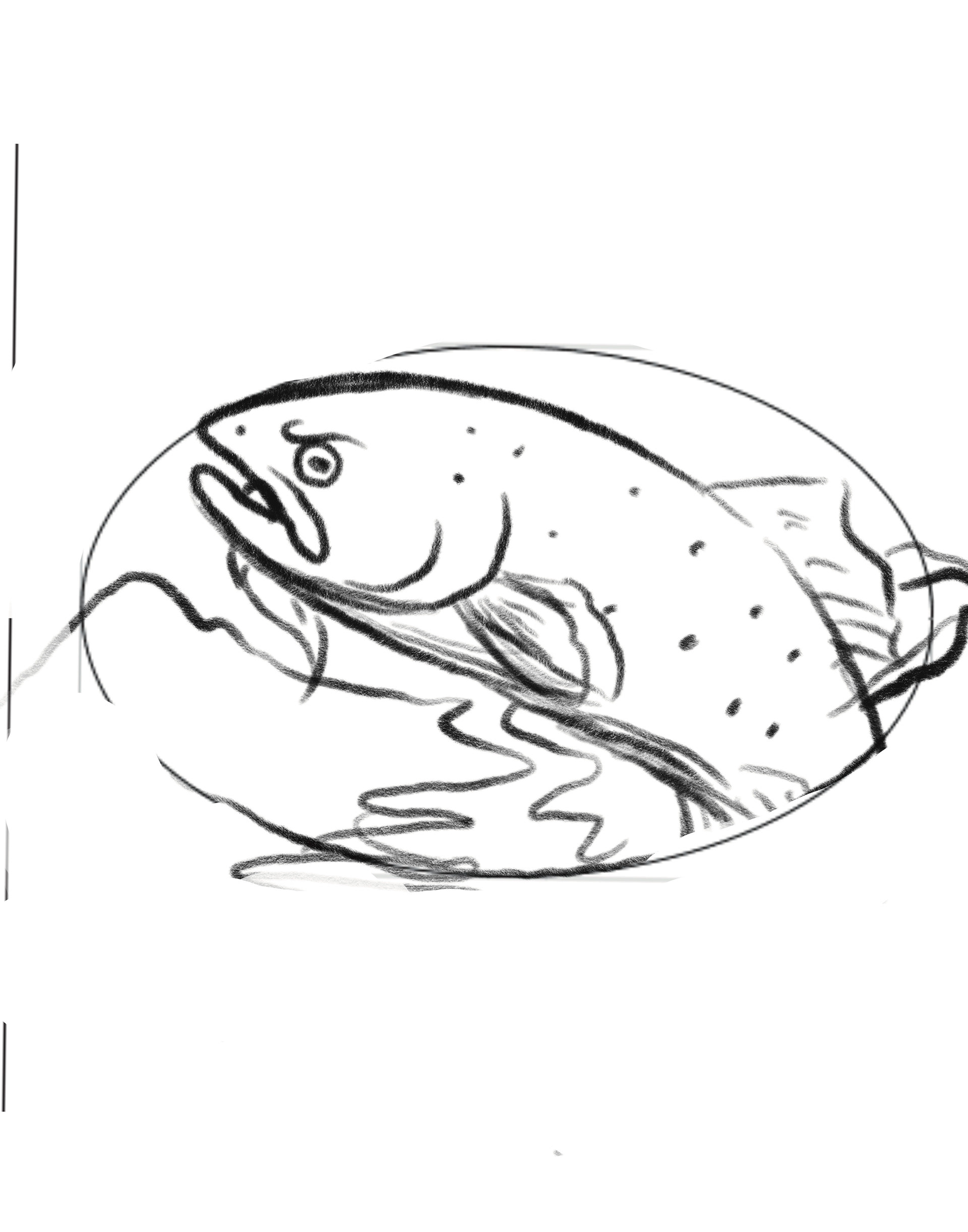 Zack from Trout Wizard Lure Company asked me to come up with an illustrative design that he could use for packaging , apparel and other merchandise. Zack showed me a design he used for his catering business, a sketch of what his general idea was, and I quickly came up with a rough sketch.