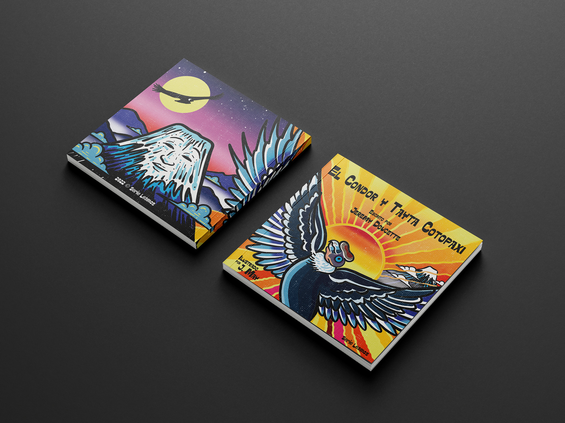 This project was published in both English and Spanish during my time as a student of illustration at the Ernest G. Welch school of Art and design at Georgia State University. I Partnered with a student abroad to create this storybook titled “El Condor y Tayta Cotopaxi”, for Serie Leamos, a free digital library for language learners. Working in conjunction with Jeremy Doucette,a writer from the University of Ottowa, I created 16 full color illustrations to accompany his words, collaborating with the translation editor and the Project’s Creative director on design and layout, with different formats for print and online versions. Extensive research went into this project to appropriately and respectfully represent the language, history, and culture of the indigenous people of Peru and Ecuador portrayed in this tale from Andean Mythology.